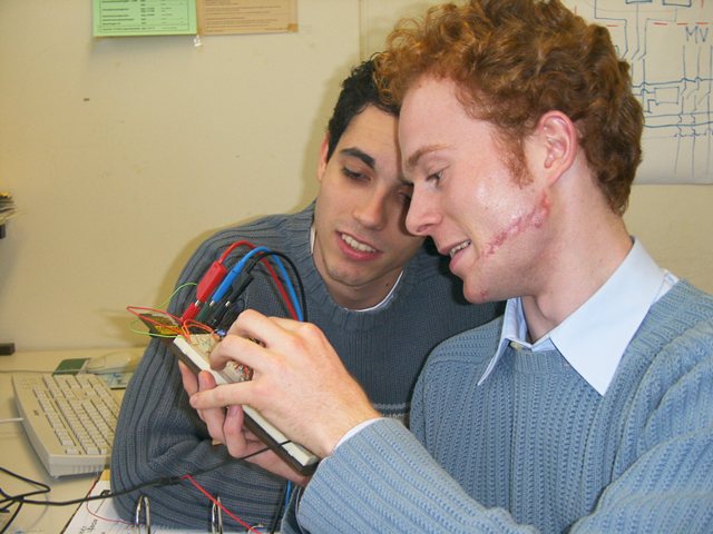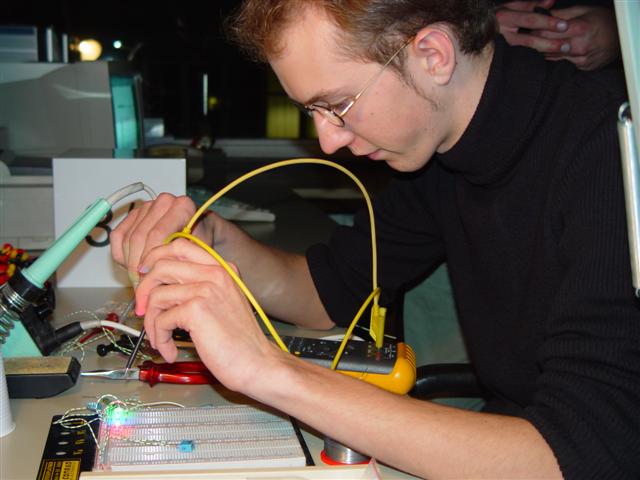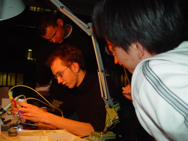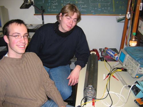 | Ede und Oli wundern sich, dass ihre Schaltung mal wieder vom Strombegrenzer gerettet werden muss. | Bild: Oliver Pabst |